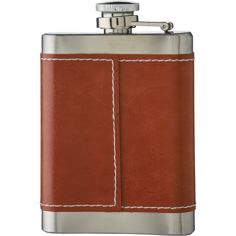 Piersiówka wykonana jest ze stali nierdzewnej o wysokiej jakości, co gwarantuje jej długotrwałe użytkowanie i odporność na korozję. Obudowa z eleganckiego materiału PU dodaje klasy, a brązowy kolor wpisuje się w bardzo modny ostatnio trend 'retro chic’. Produkt sprzedawany jest w atrakcyjnym brązowym kartoniku, dzięki czemu nadaje się doskonale na prezent.