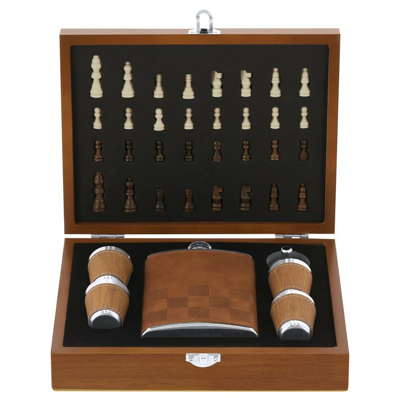 Zestaw upominkowy, piersiówka 175 ml, kieliszki 30 ml, szachy